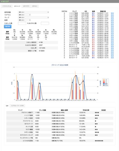 前回の記事に記載してある、スプラトゥーンのスコア管理サービスをリニューアルしました。 サイト名を「イカスコア」に変更 レイアウトを一新 ガチエリアについてはKD比による分析を行いやすいようにグラフ等を追加 ガチホコ対応 武器・マップごとの安定度を…